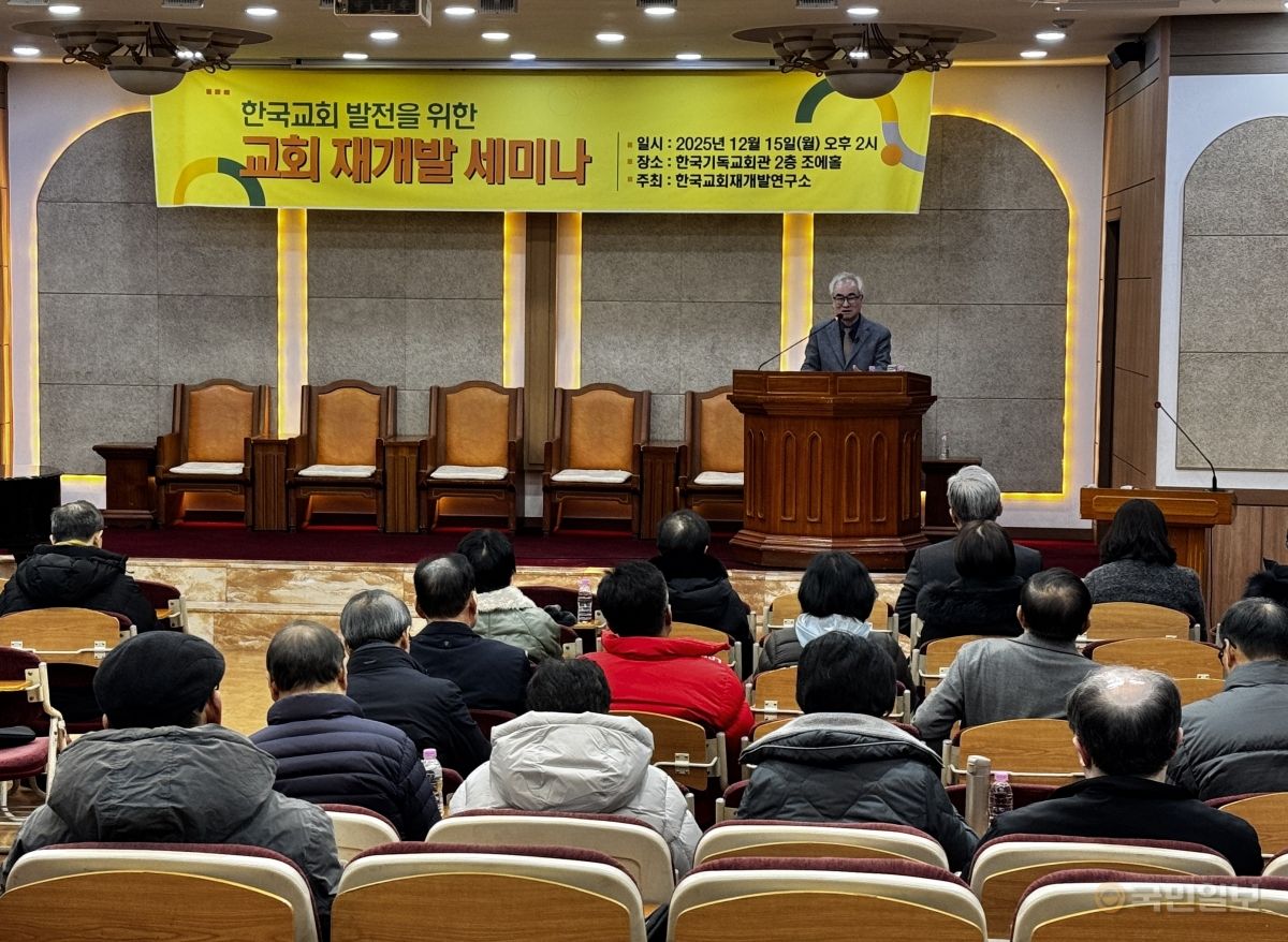 한편 한국교회재개발연구소는 오는 12월 7일 오후 2시 대전성서침례교회에서 대전지역 세미나, 12월 14일 오후 2시 서대구장로교회에서 대구지역 세미나도 개최할 예정이다. 세미나 참석 문의는 전화 010-4342-7009로.